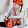 Anne Dubost is an award-winning French artist who enjoys capturing in her paintings people's fragility, determination, sensuality, as well as their transience. To find Anne Dubost's true intention one must read between the lines. The suggestion is indeed at the heart of her process, which spreads colours and textures in order to envelope the subjects with a halo. These circular movements, present in the paintings, lead the artist's characters in a dance that exacerbates the spinning palette, its tonalities and the contrasts packed with energy. A luminous work that contains all the vibrations of the world or, in the words of Régis Broustet, "a palette of spinning colours, much like a bouquet of fireworks".