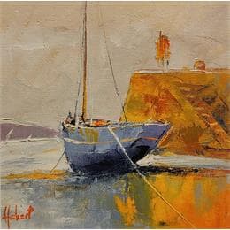 This unique and original contemporary artwork "Au port" on the subject of Marine has been created by the contemporary artist Hébert Franck.