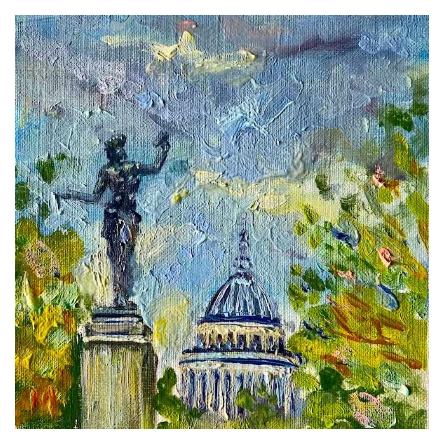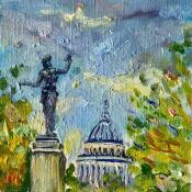 The statue, located in the Luxembourg Gardens, depicts a young actor rehearsing his role, manuscript in hand. It is positioned in line with Rue Soufflot, standing out against the Pantheon in the background.