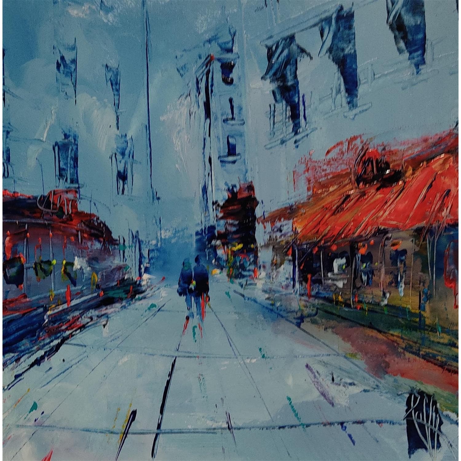 This unique and original contemporary artwork "Balade à deux" on the subject of Urban has been created by the contemporary artist Raffin Christian.