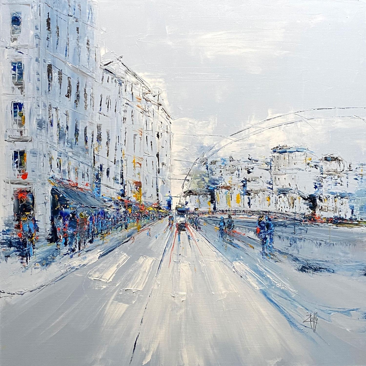 This unique and original contemporary artwork "Sur les quais" on the subject of Urban has been created by the contemporary artist Raffin Christian.