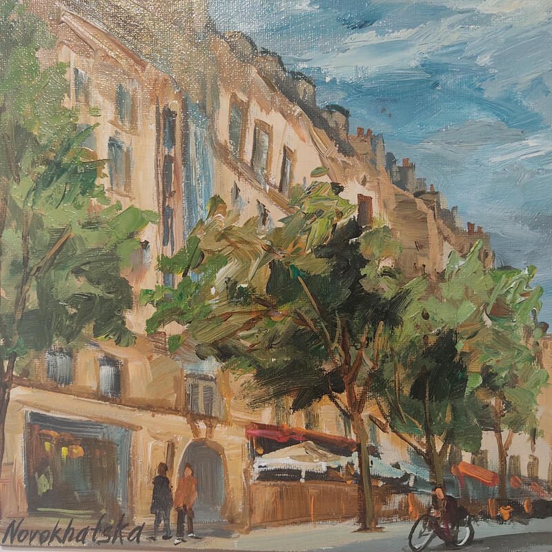 This unique and original contemporary artwork "Rue de Paris" on the subject of Urban has been created by the contemporary artist Novokhatska Olga.