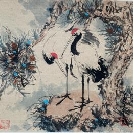 This unique and original contemporary artwork "Cranes" on the subjects of Animals, Nature has been created by the contemporary artist Yu Huan Huan.