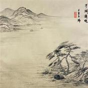 This unique and original contemporary artwork "Lake at dawn / lac à l'aube" on the subjects of Landscapes, Life style has been created by the contemporary artist Amblard Rui.