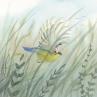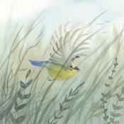 The artist imagined the story of a child installed on the back of a blue tit, in full flight in the middle of the wild grass of the garden.