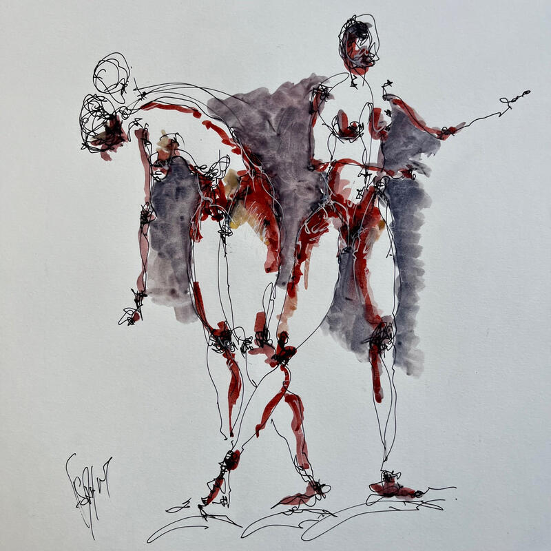 This unique and original contemporary artwork "Adèle" was created by contemporary artist Sahuc François. The artist used watercolor and ink techniques to create this small-format painting on paper in a figurative style on the themes of minimalism and nudity.