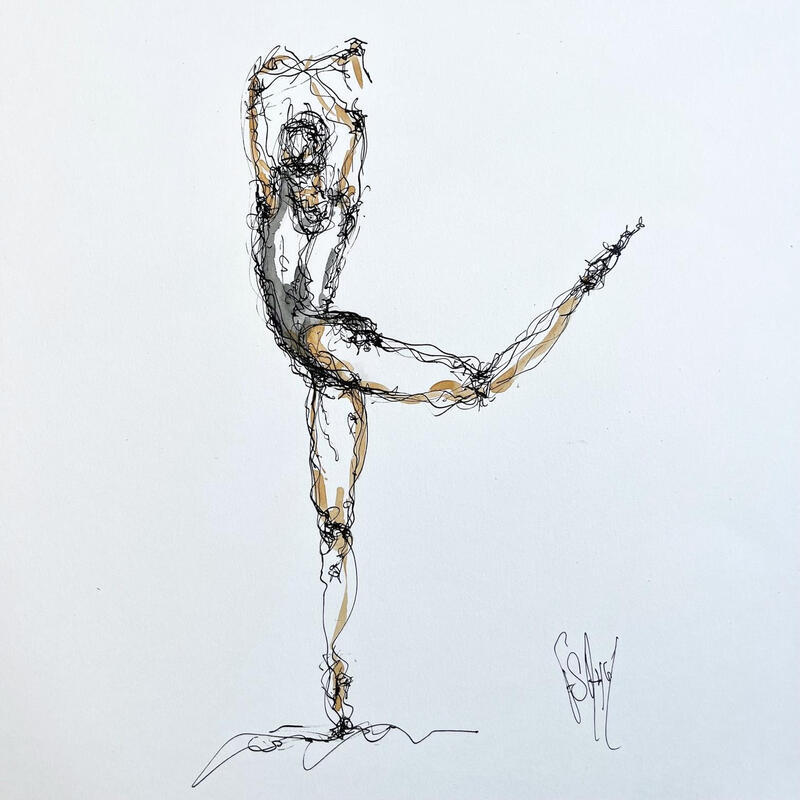 This unique and original contemporary artwork, "Julie danse 2," was created by contemporary artist Sahuc François. The artist used watercolor and ink techniques to create this small-format painting on paper in a figurative style, focusing on the themes of minimalism and nudity.