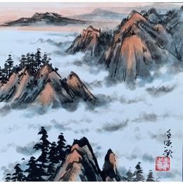 This unique and original contemporary artwork "Clouds Mountain " on the subjects of Nature, Landscapes has been created by the contemporary artist Yu Huan Huan.