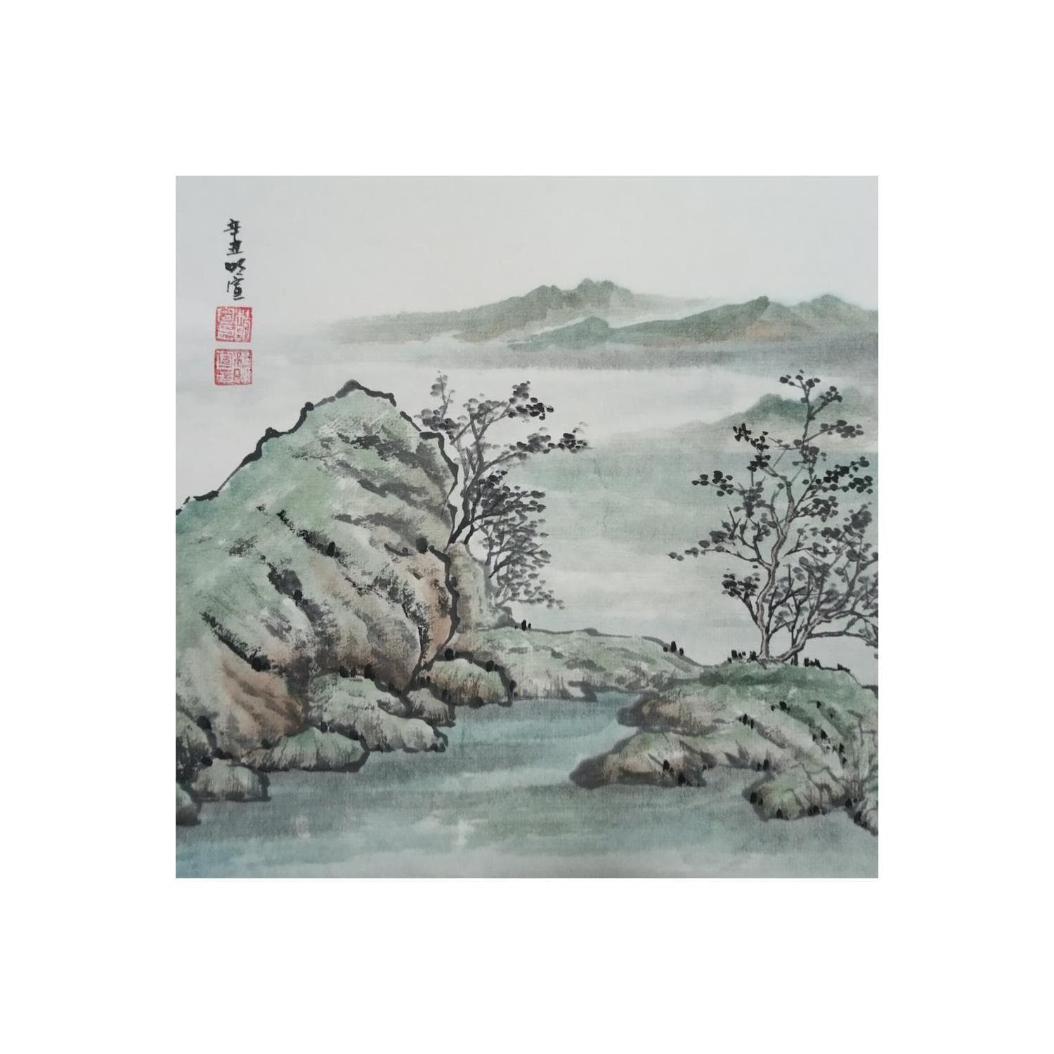 This unique and original contemporary artwork "Summer lake" on the subject of Landscapes has been created by the contemporary artist Du Mingxuan.
