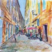 Toulon ruelle aux couleurs chaudes Painting Toulon ruelle aux couleurs chaudes  by Hoffmann Elisabeth | Painting Figurative Urban Watercolor