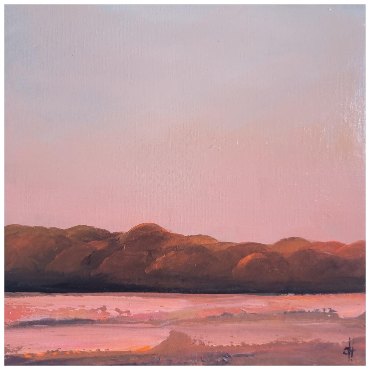 This unique and original contemporary artwork "ROSÉ COLOURED LAND" on the subject of Landscapes has been created by the contemporary artist Svenja Herz.