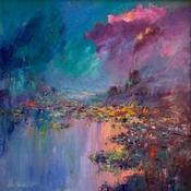 This unique and original contemporary artwork "Mystic Land" on the subject of Landscapes has been created by the contemporary artist Petras Ivica.