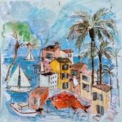 This unique and original contemporary artwork "Ambiance de Méditerranée" on the subjects of Landscapes, Life style has been created by the contemporary artist Colombo Cécile.