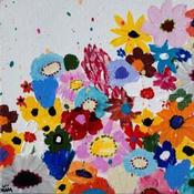This unique and original contemporary artwork "F1 No Name 10039-20776-20250527-4" was created by contemporary artist Mam. The artist used the Acrylic technique to create this small-format Pop-art painting on canvas board.