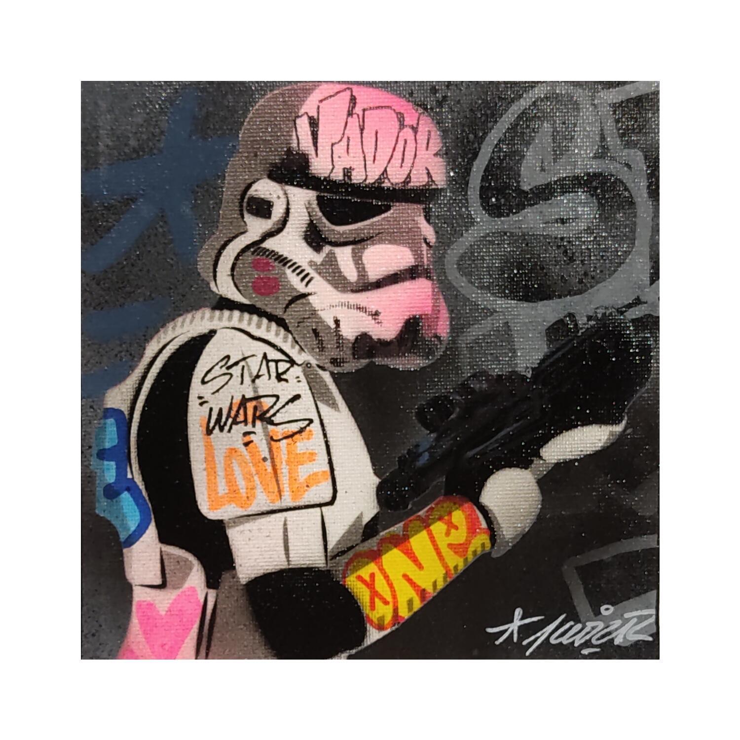 The artist used Acrylic, Graffiti media on Canvas board to create this Pop-art, Small size painting.
