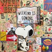 This unique and original contemporary artwork "Week end is comming" on the subject of Pop icons has been created by the contemporary artist Kikayou.