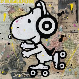 This unique and original contemporary artwork "F4 balade en musique" on the subject of Pop icons has been created by the contemporary artist Marie G. .
