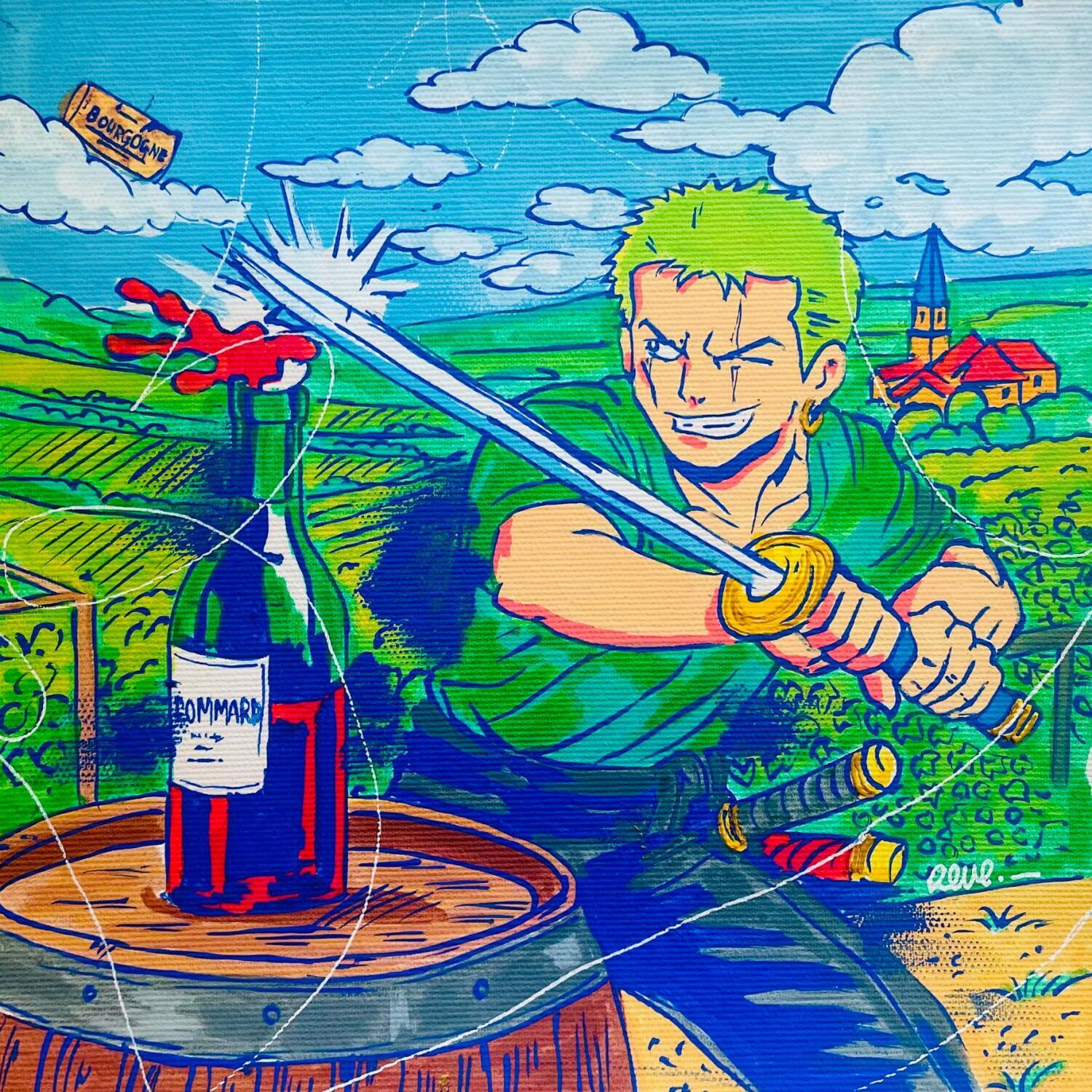 This unique and original contemporary artwork "Sabreur" on the subject of Pop icons has been created by the contemporary artist Revel.