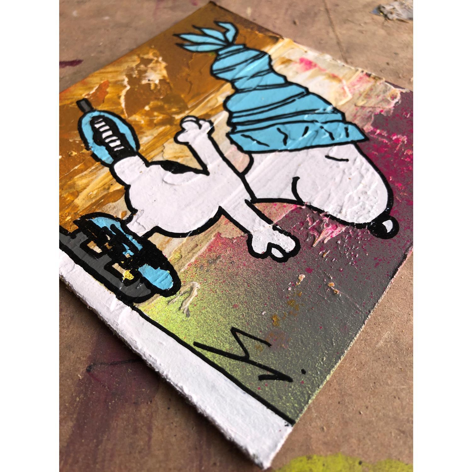 The artist used Acrylic, Graffiti media on Canvas board to create this Pop-art, Small size painting.