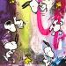 This unique and original contemporary artwork "SNOOPY JUMP" on the subject of Pop icons has been created by the contemporary artist Mestres Sergi.