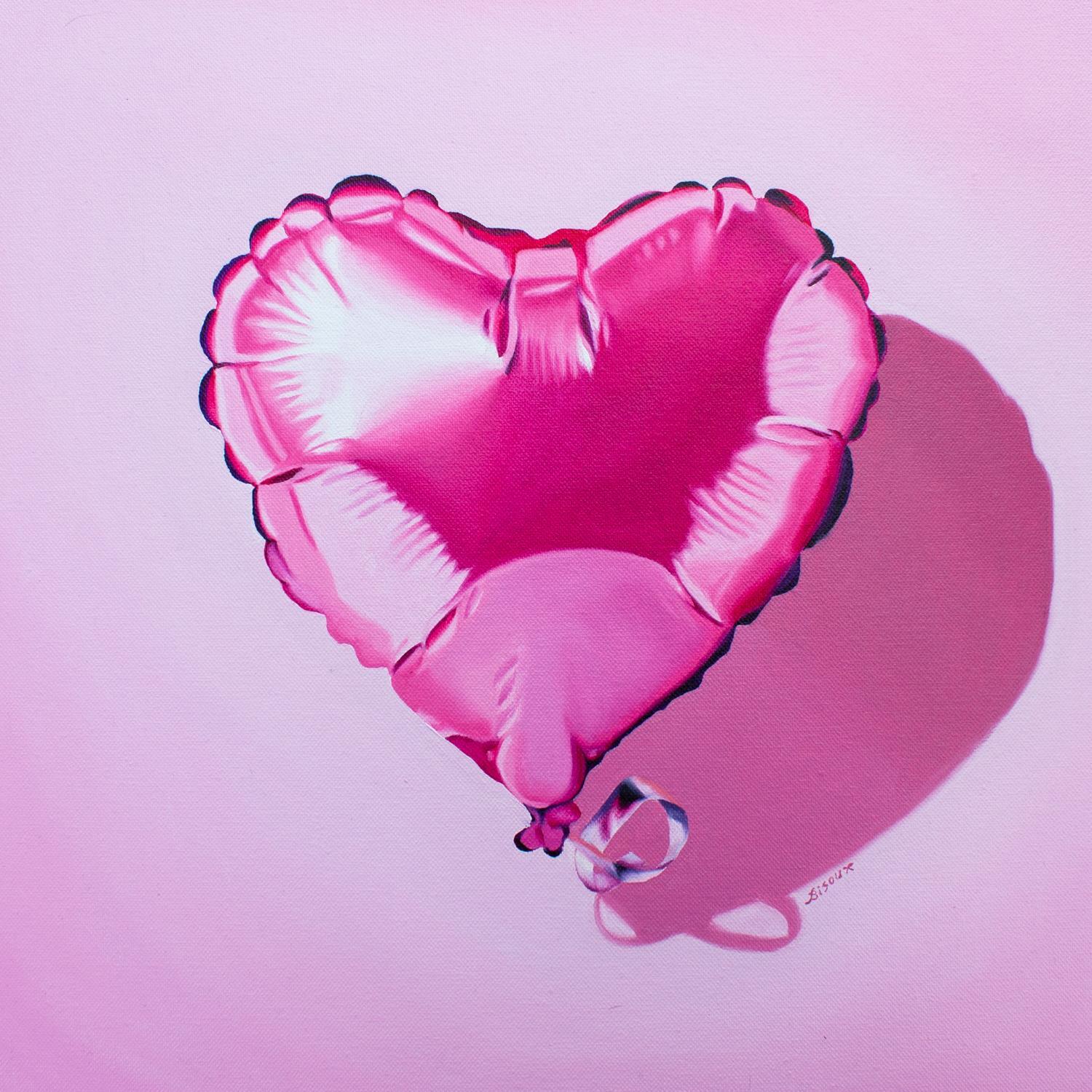 Make no mistake, this work is a painting! The artist creates with talent hyperrealistic paintings on the theme of the party and the packaging. The details of the shadows, lights and folds of the material are worked with such precision that you can feel the air that fills this heart-shaped balloon.