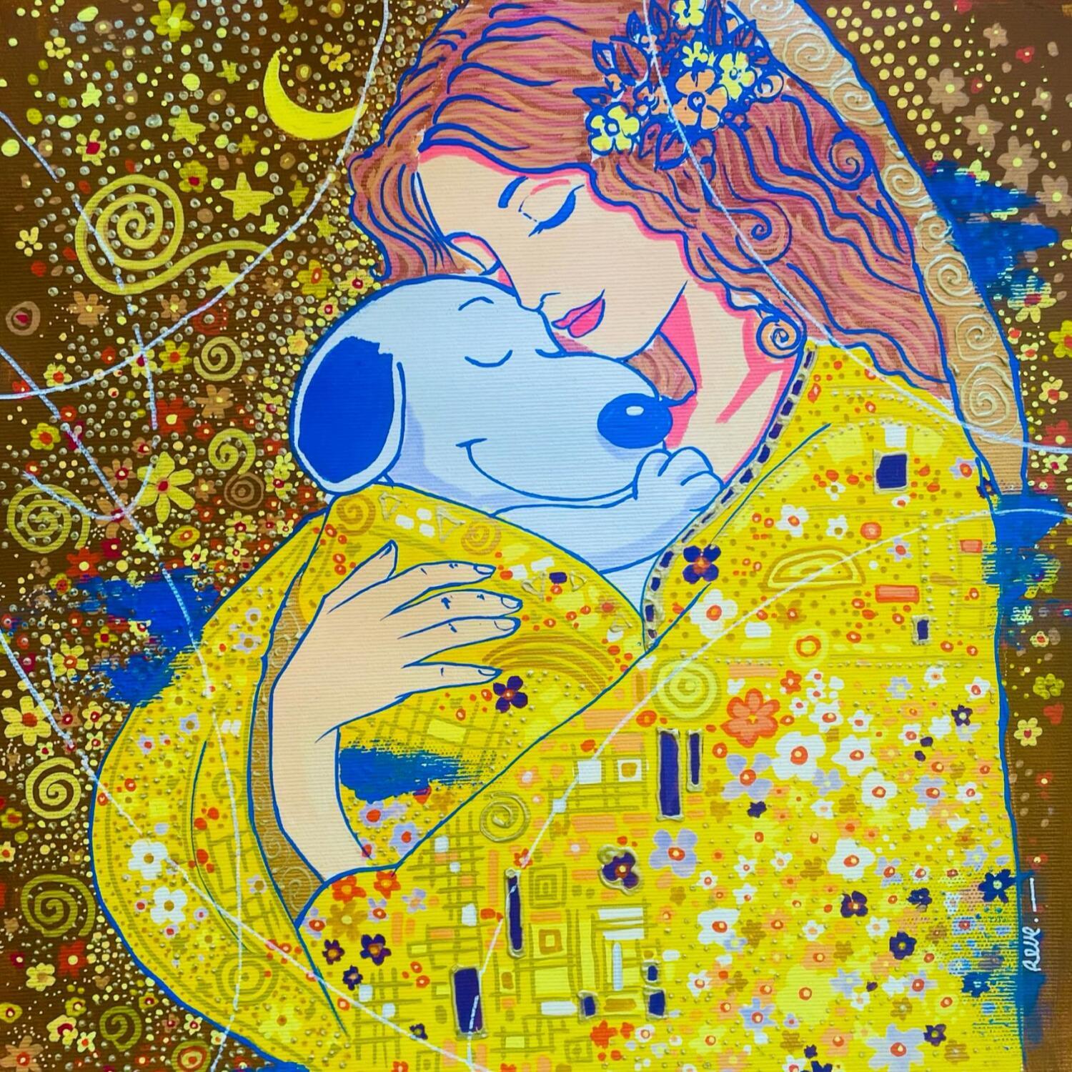 This unique and original contemporary artwork "Câlin Klimt" on the subject of Pop icons has been created by the contemporary artist Revel.