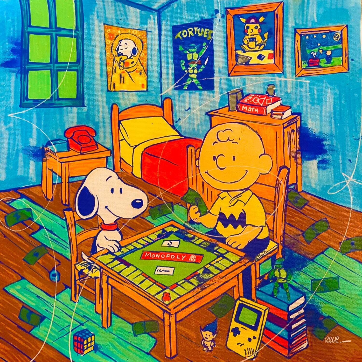 This unique and original contemporary artwork "Chambre de Van Gogh" on the subject of Pop icons has been created by the contemporary artist Revel.