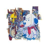 The artist used mixed medium to create this Pop-art, Small size painting.