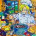 The artist used mixed medium to create this Pop-art, Small size painting.