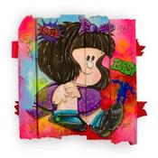 This unique and original contemporary artwork "Mafalda" on the subject of Pop icons has been created by the contemporary artist Molla Nathalie .