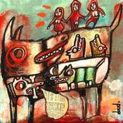 This unique and original contemporary artwork "Le loup boit trop de rouge" on the subjects of Animals, Nude, Life style has been created by the contemporary artist Doudoudidon.