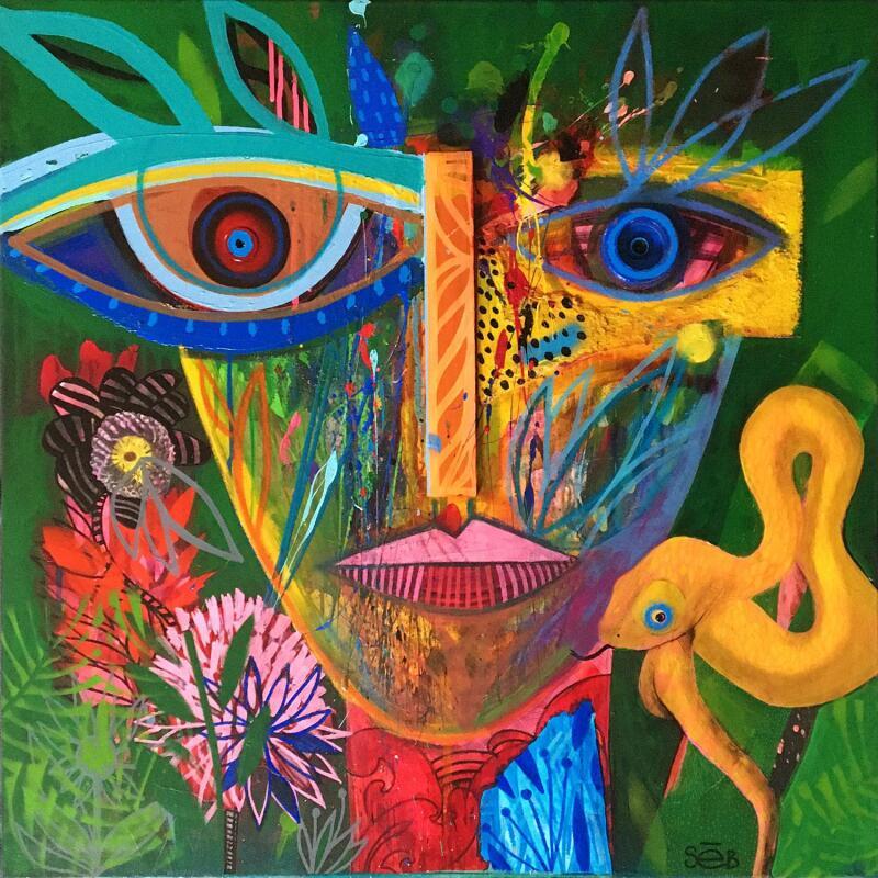 This unique and original contemporary artwork "Maracuya" was created by contemporary artist Seb. The artist used the Acrylic technique to create this large-format painting on canvas in the Art Singulier style.