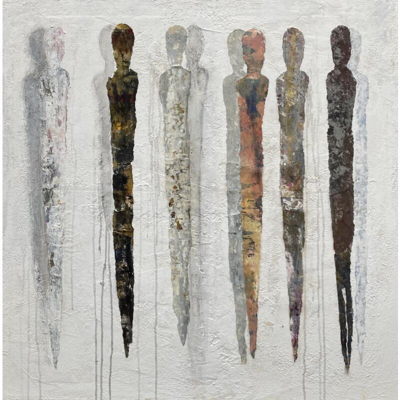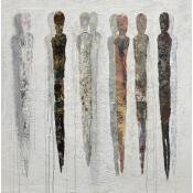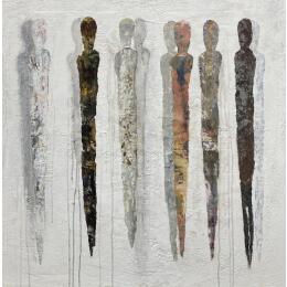 The artist used Acrylic, Gluing, Sand media on Canvas board to create this Raw art, Large size painting.