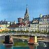 Painting Balade sur le quais des bateliers à Strasbourg by Touras Sophie-Kim | Painting Realism Landscapes Urban Architecture Acrylic