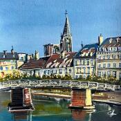 This unique and original contemporary artwork "Balade sur le quais des bateliers à Strasbourg " was created by contemporary artist Touras Sophie-Kim .