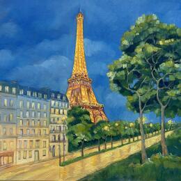 This unique and original contemporary artwork "Paris by night" on the subjects of Architecture, Landscapes, Urban has been created by the contemporary artist Kochevykh Yulia.