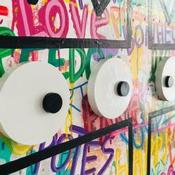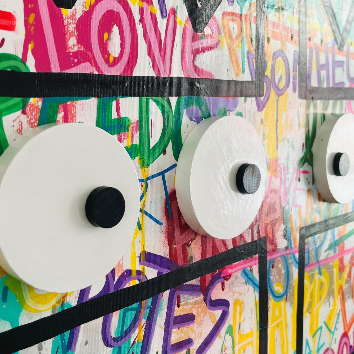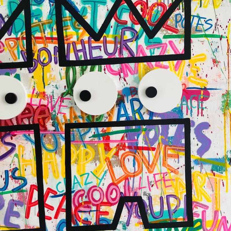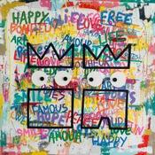 This unique and original contemporary artwork "HAPPY" on the subjects of Pop icons, Life style, Society has been created by the contemporary artist Mam.