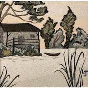 This unique and original contemporary artwork "La cabane au bord de l'eau" on the subject of Landscapes has been created by the contemporary artist Jovys Laurence .