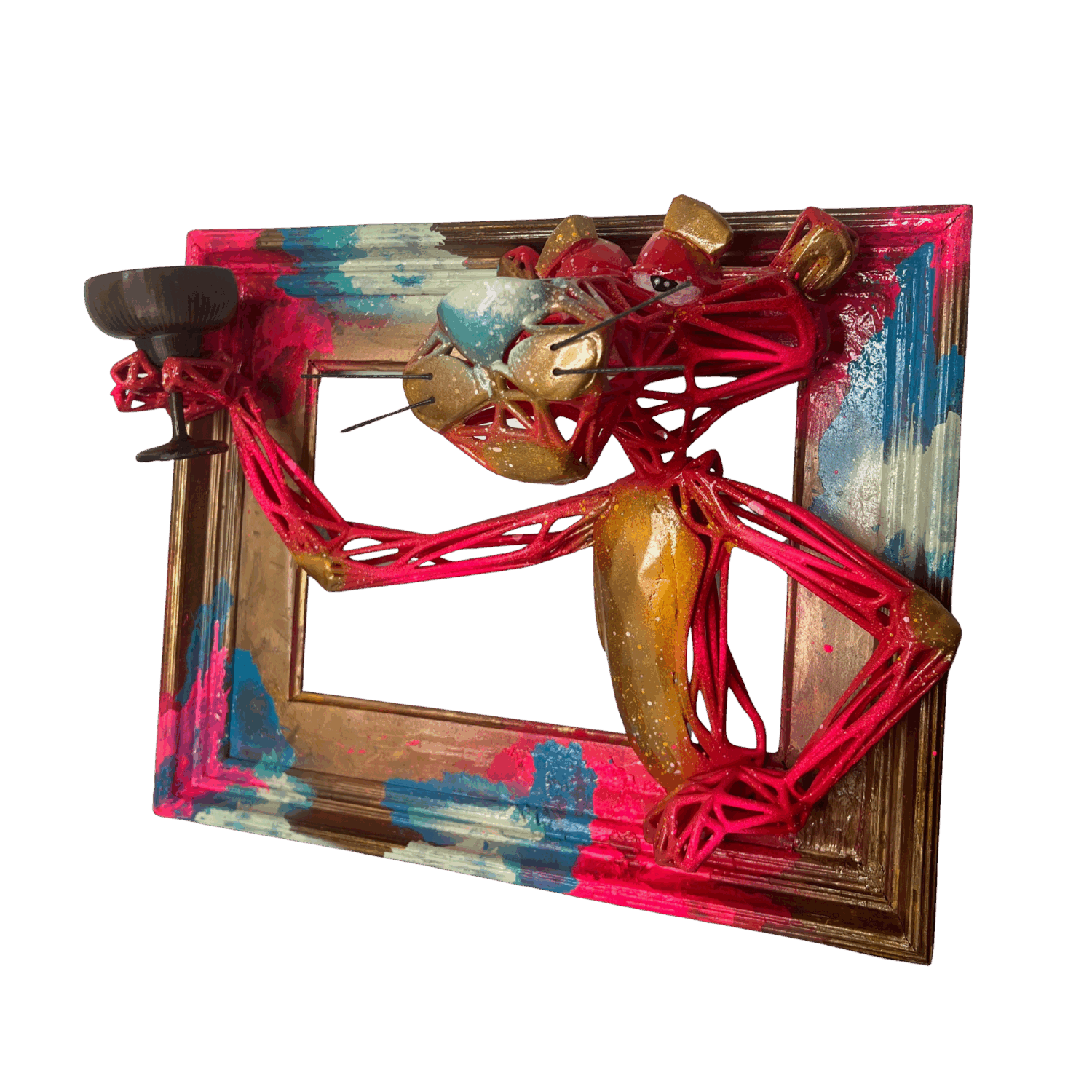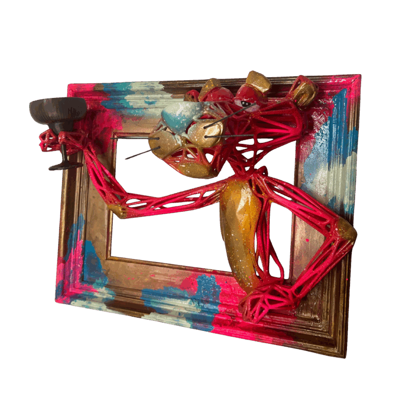 Sculpture PANTHERE ROSE TCHIN ! ROSE DE ROSE by Shenoda | Sculpture Pop-art Graffiti Resin