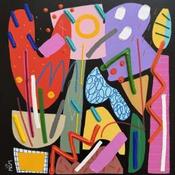 This unique and original contemporary artwork "PLUIE DE JOIE" on the subjects of Pop icons, Minimalist, Still-life has been created by the contemporary artist Mam.