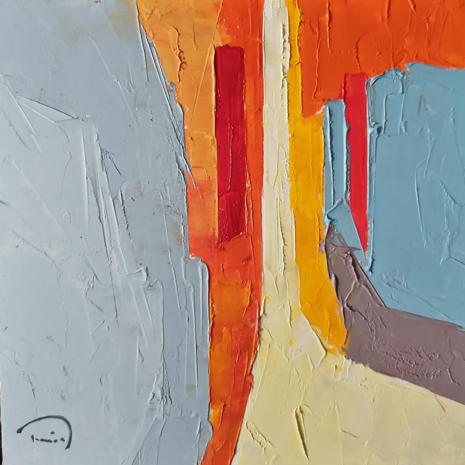 This unique and original contemporary artwork "The orange house" on the subjects of Urban, Life style has been created by the contemporary artist Tomàs.