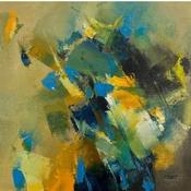 The artist used Oil medium on Canvas to create this Abstract, Small size painting.