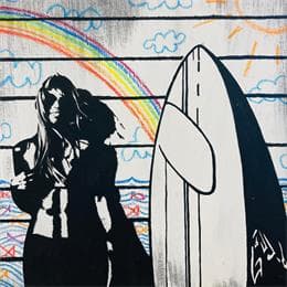 Painting Girl with surfboard by Di Vicino Gaudio Alessandro | Painting Acrylic