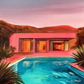 Painting THE PINK HOUR by Clavaud Morgane | Painting Figurative Landscapes Architecture Acrylic