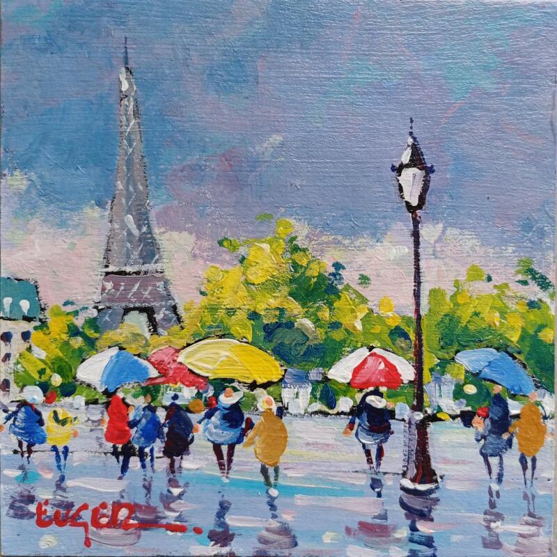 This unique and original contemporary artwork "PLACE DE LA CONCORDE SOUS LA PLUIE" on the subjects of Landscapes, Life style, Urban has been created by the contemporary artist Euger.