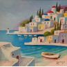 This unique and original contemporary artwork "Paysage Grec AQ125" on the subjects of Landscapes, Marine has been created by the contemporary artist Burgi Roger.