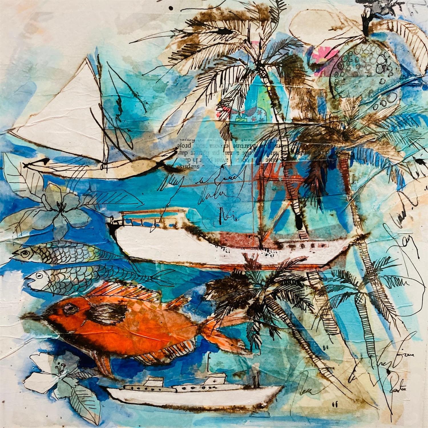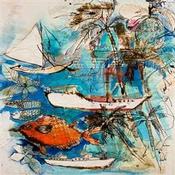 This unique and original contemporary artwork "Boats" on the subject of Life style has been created by the contemporary artist Colombo Cécile.