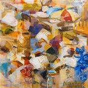 Niankoye's artistic journey began in his hometown N'zérékoré on the southern side of the Republic of Guinea. His passion for drawing and painting led him to go to the National School of Fine Arts in Conakry (the capital) in the 70's. With a degree in graphic arts, he attended various workshops and experimented with different techniques. Very attentive to the world of shapes and colours, he began by passionately copying nature. He travelled in his own country, to the Ivory Coast and finally to France, where he moved in 1990. He worked as a designer, illustrator and fashion designer, but soon decided to devote himself to painting. Travelling and discoveries opened other perceptions of the world to him and gave him a new vision of art. He was freed from traditional constraints and has leaned towards contemporary art since 2000, and has finally thrived in his abstract creations.