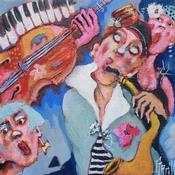 This unique and original contemporary artwork "swing at the blue club. " on the subject of Life style has been created by the contemporary artist Garilli Nicole.