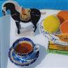 This unique and original contemporary artwork "Gengis appréciait le thé " on the subject of Still-life has been created by the contemporary artist Auriol Philippe.